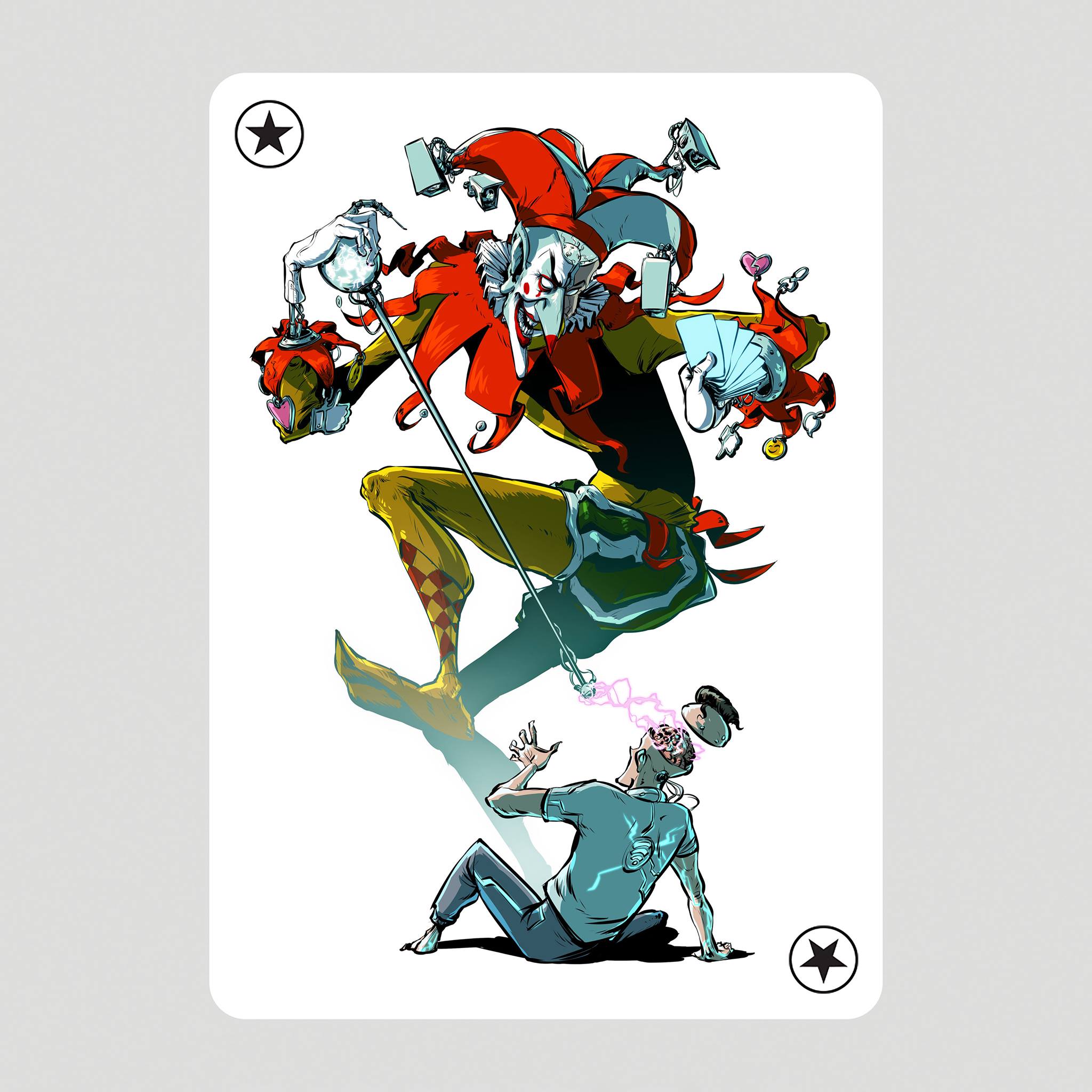 Еще один проект, который сдал буквально на днях — карта для колоды проекта Playing Arts, организаторы которого предложили иллюстраторам заглянуть в будущее человечества. Моя версия правда оказалась не сильно радужной.