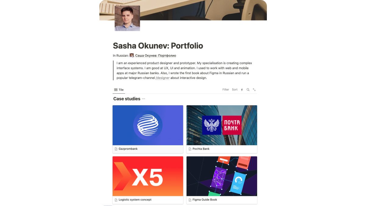 Скорее всего, вы уже сталкивались с ресурсом. Notion заточен под структурирование информации. Оформите портфолио дизайнера как доску и разместите на ней обложки проектов, описания и ссылки.