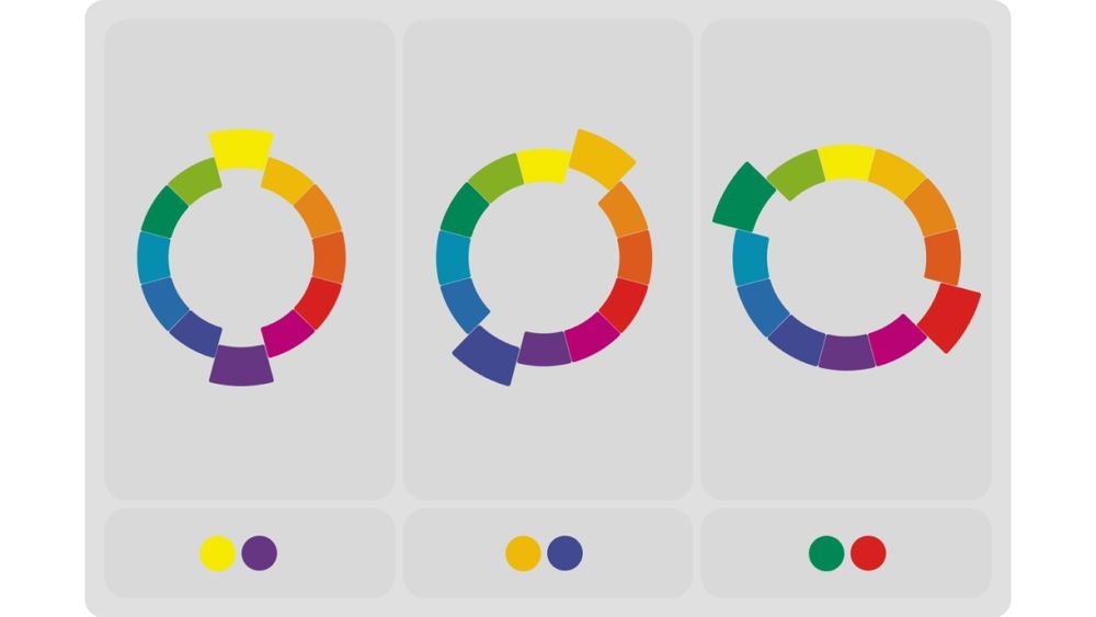 Комплементарные цвета — те, которые расположены друг напротив друга на цветовом круге, — при визуальном воздействии могут создавать более яркое и выразительное восприятие.