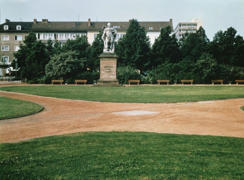 Первый: cкульптура Уолтера де Мария «Вертикальный километр». Сделана в 1997 году для 6-й «Документы» в Касселе в виде латунного километрового стержня. Он полностью закопан в землю так, что на поверхности осталась видна только вершина. В этом расхождении внешнего и невидимого, потраченных усилий и легкости иронии я нахожу для себя отклик. Простая и емкая форма резонирует во множество прочтений. Как писала художница Сара Уилсон, работа «ставит под вопрос доверие между художником и зрителем: а мы верим, что там, под землей, правда есть километровый штырь?».