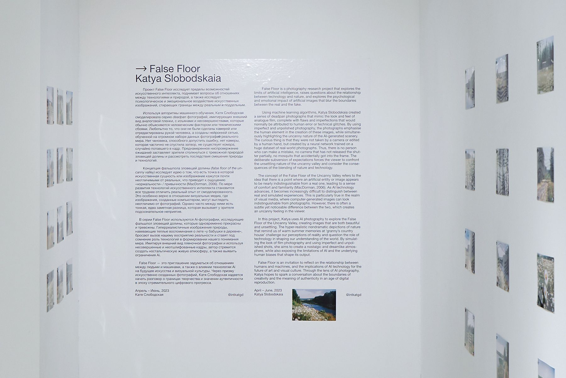 В проекте False Floor я объединила свой интерес к этой концепции и любовь к недраматичной фотографии. Проект исследует воздействие на человека AI-изображений, отношения между технологиями и природой, реальным и смоделированным опытом.